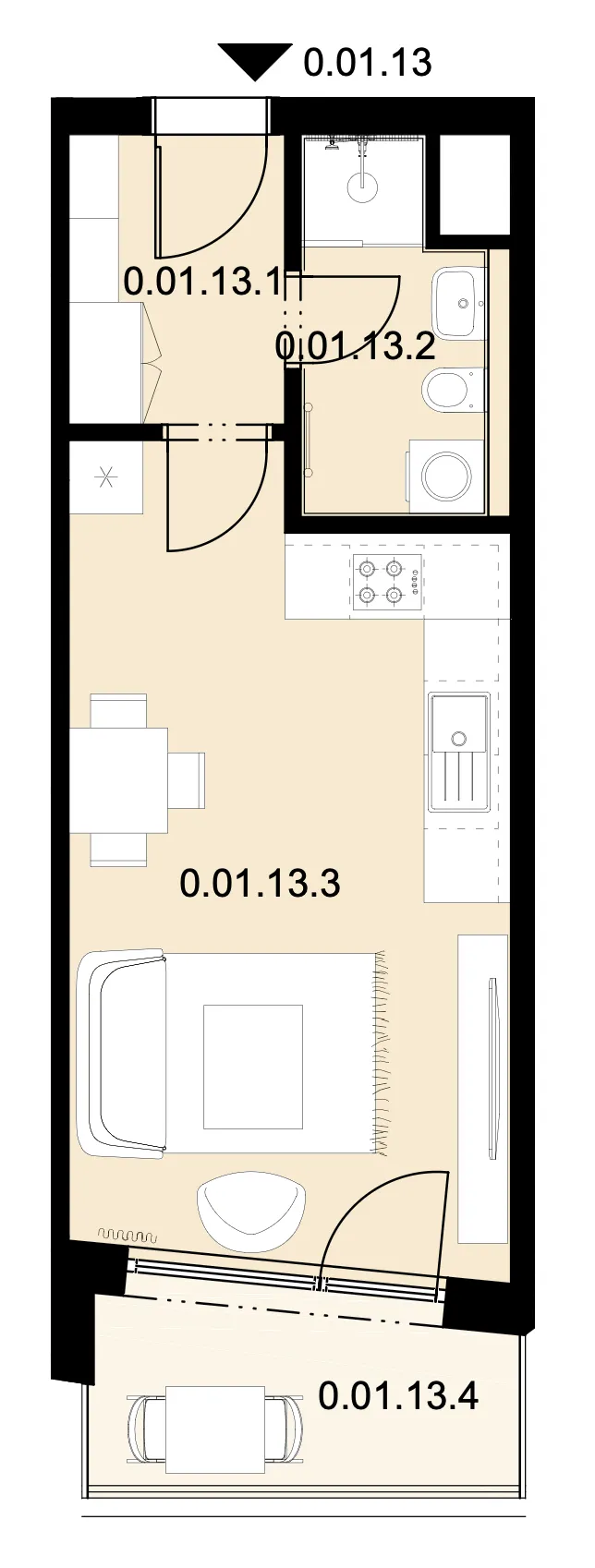 | 03 | Obývací pokoj + KK | 22,7 m2 |