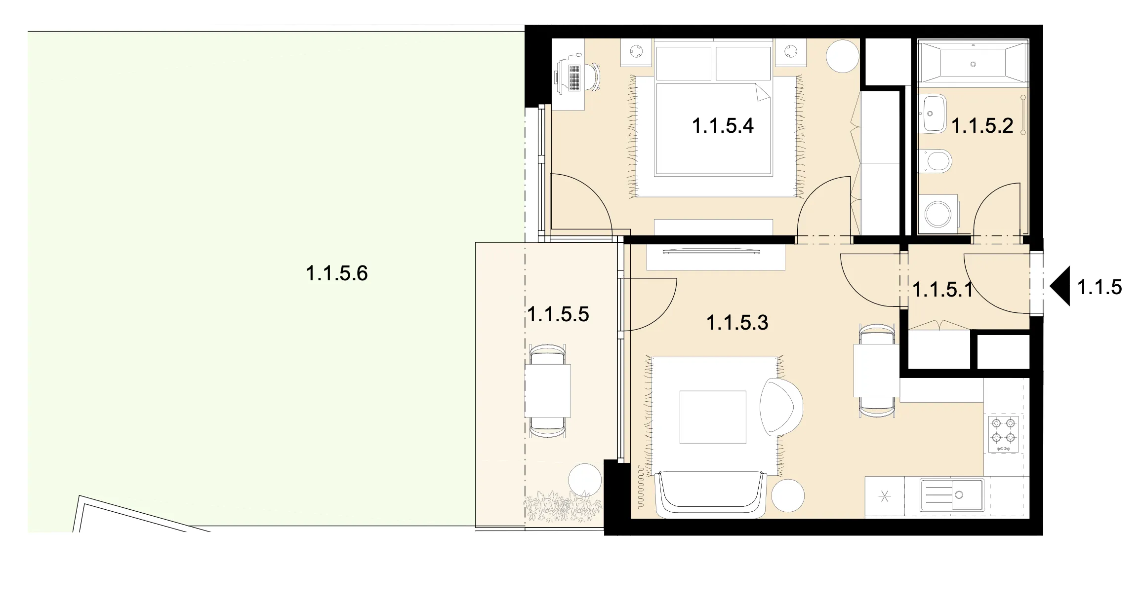 | 03 | Obývací pokoj + KK | 21,6 m2 |
