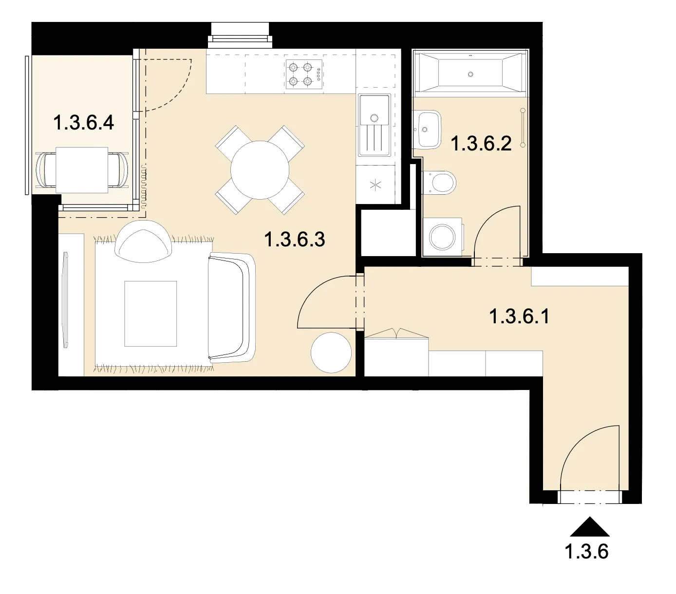 | 03 | Obývací pokoj + KK | 21,7 m2 |