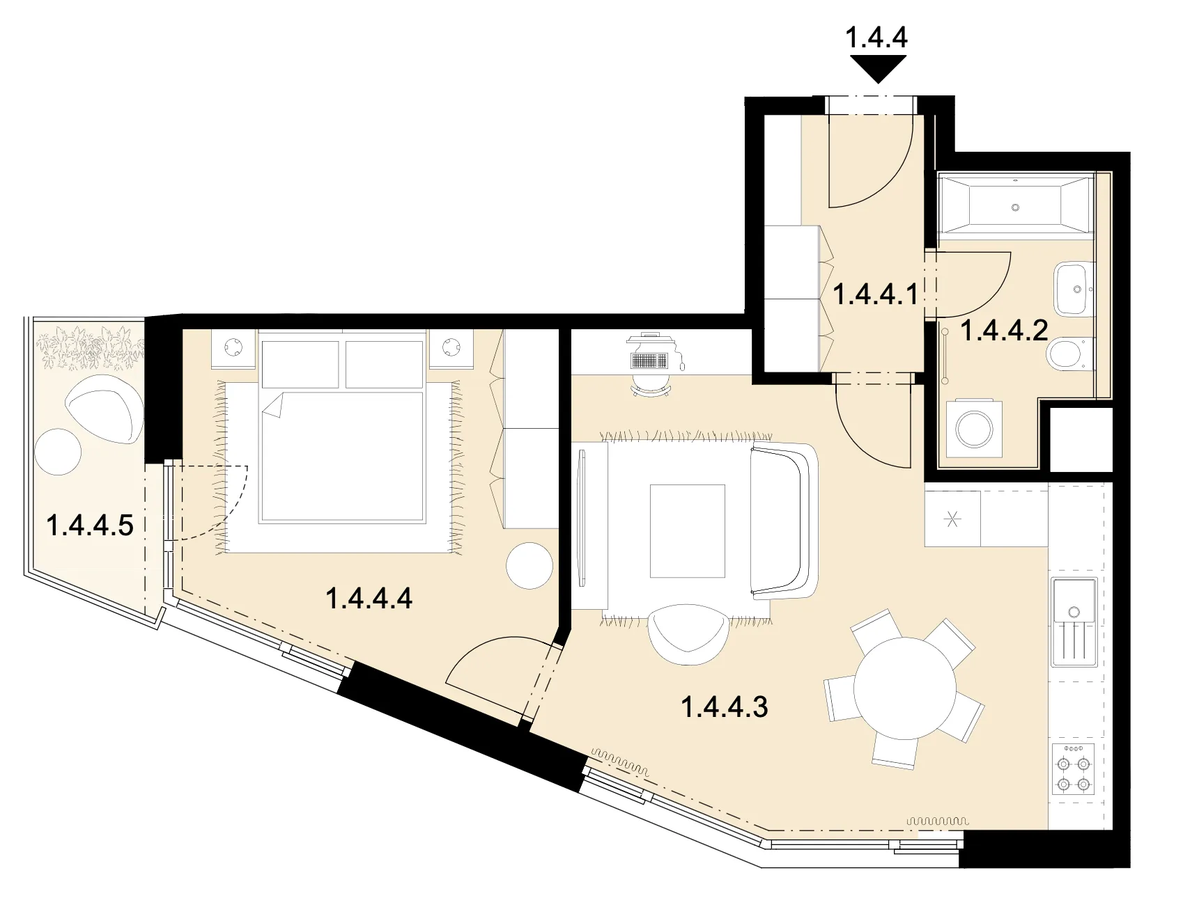 | 03 | Obývací pokoj + KK | 26,7 m2 |