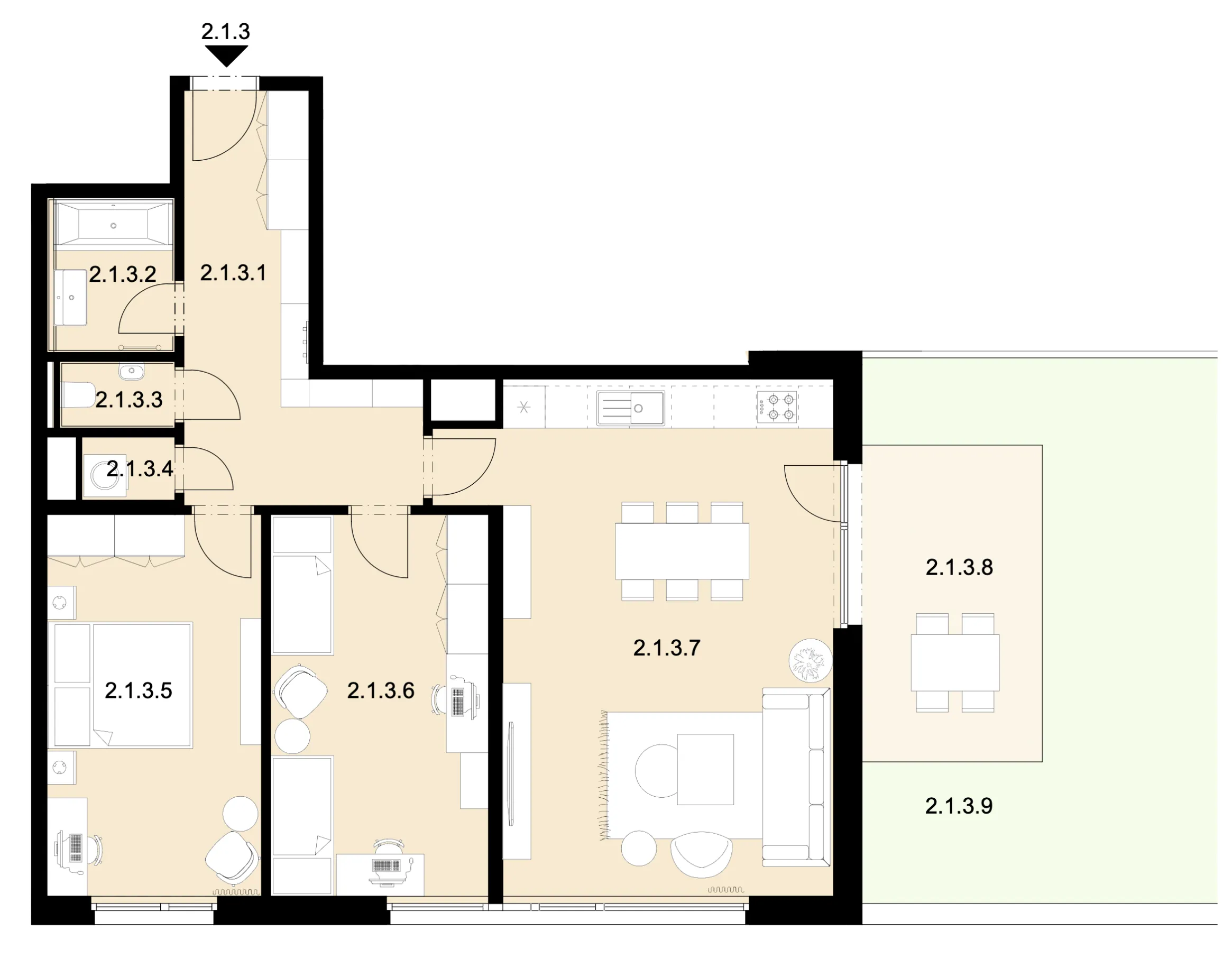 | 07 | Obývací pokoj + KK | 36,2 m2 |