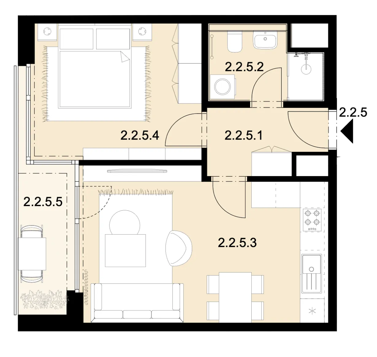 | 04 | Obývací pokoj + KK | 22,6 m2 |