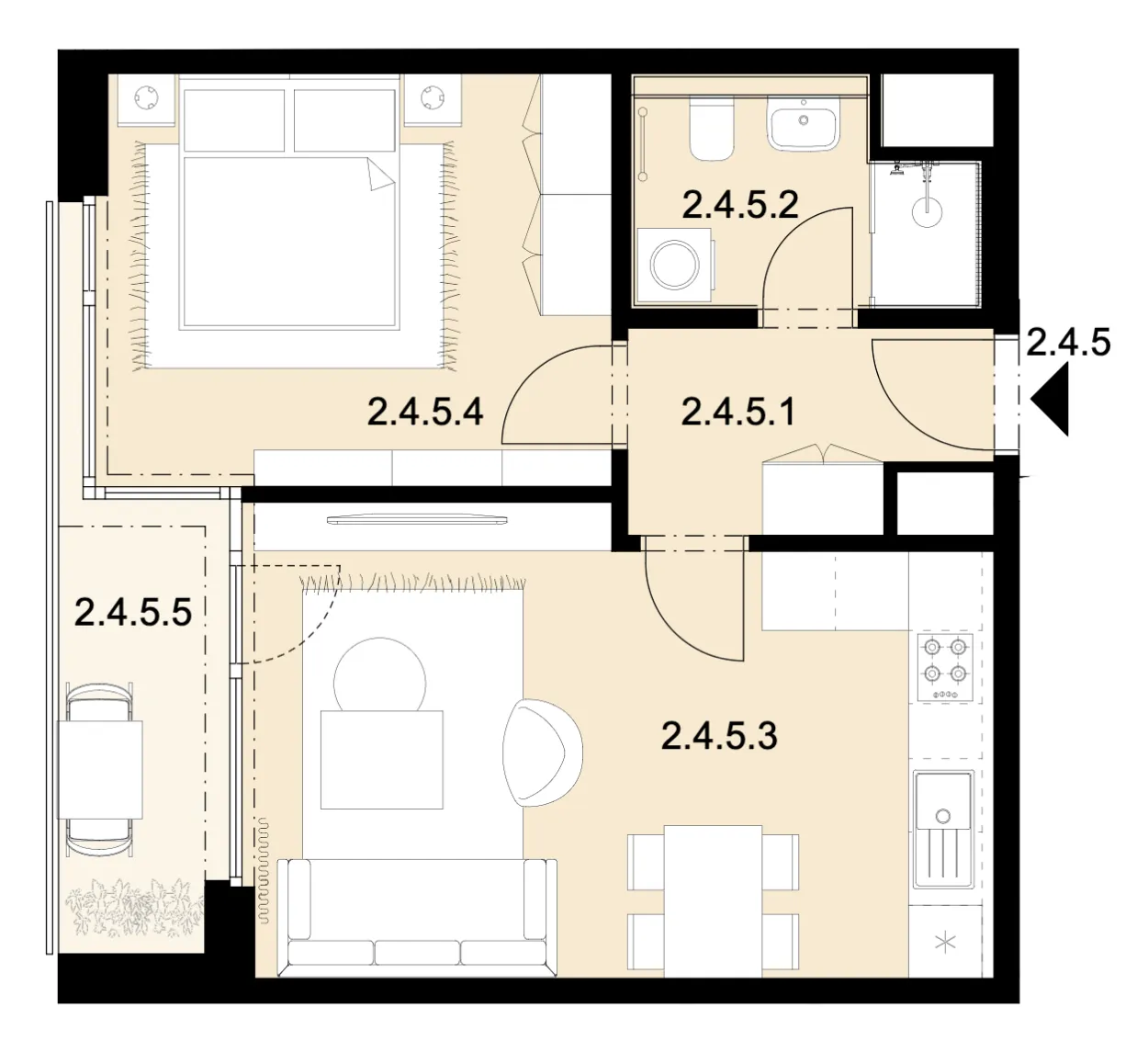 | 04 | Obývací pokoj + KK | 22,6 m2 |