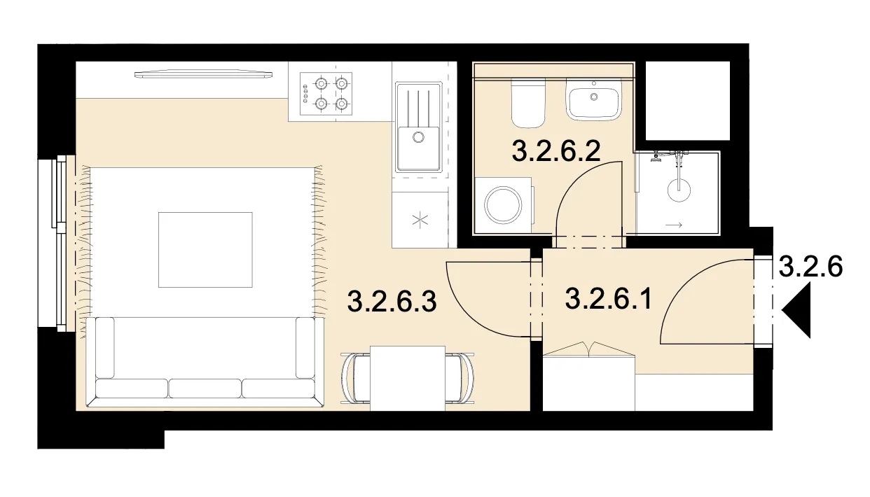 | 03 | Obývací pokoj + KK | 16,9 m2 |