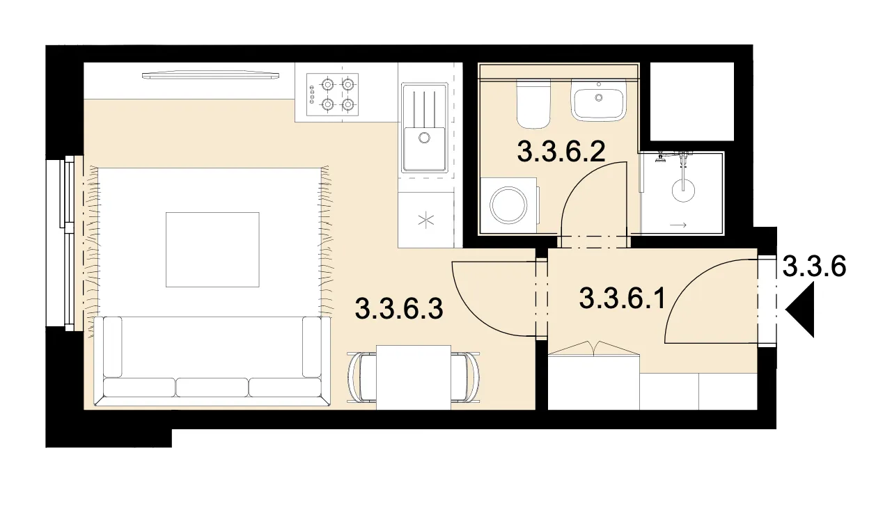 | 03 | Obývací pokoj + KK | 16,9 m2 |
