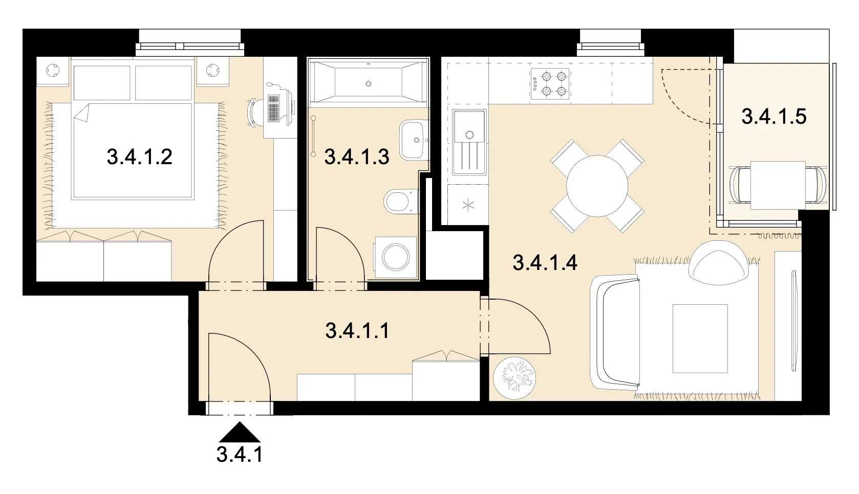 | 04 | Obývací pokoj + KK | 21,7 m2 |