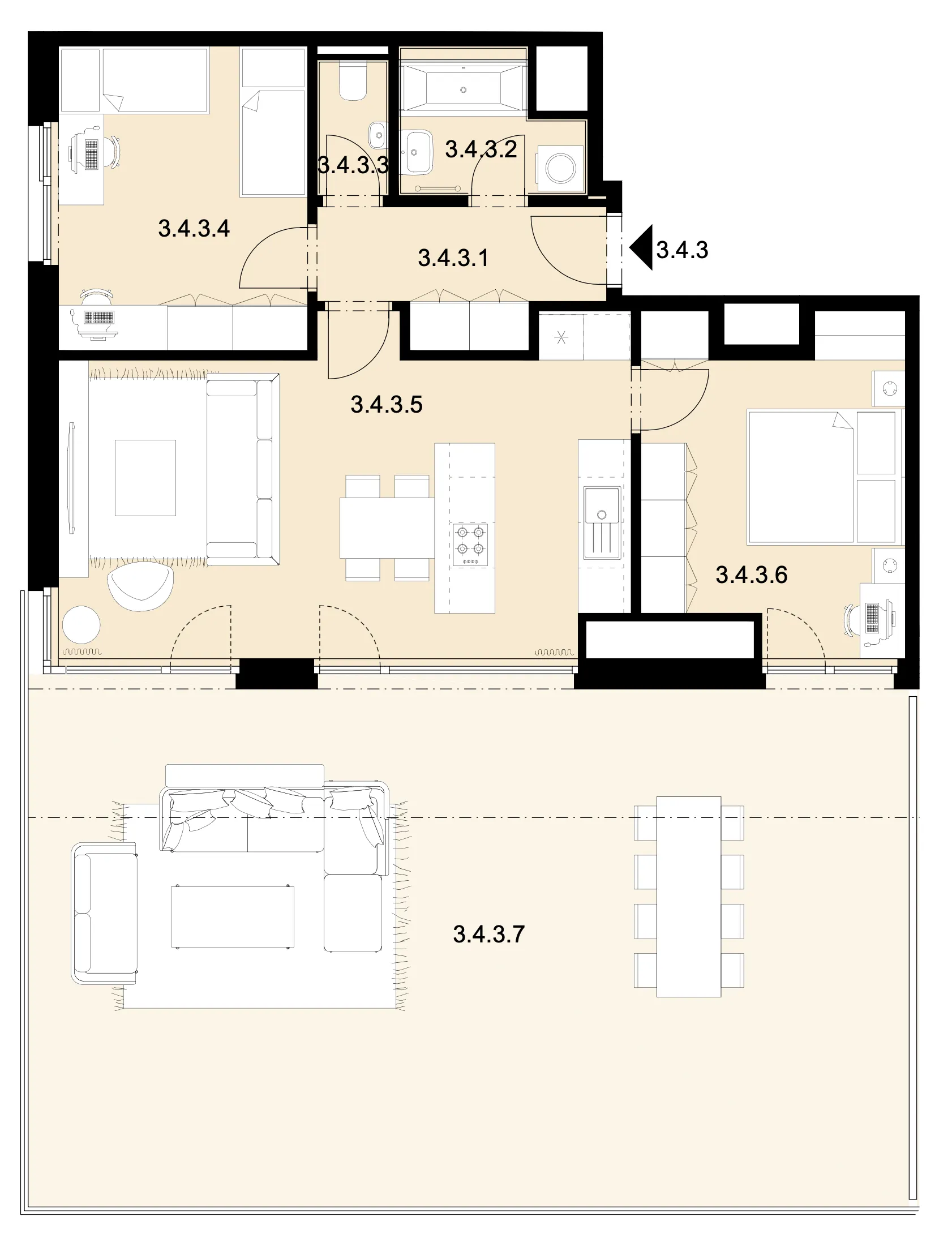 | 05 | Obývací pokoj + KK | 31,7 m2 |