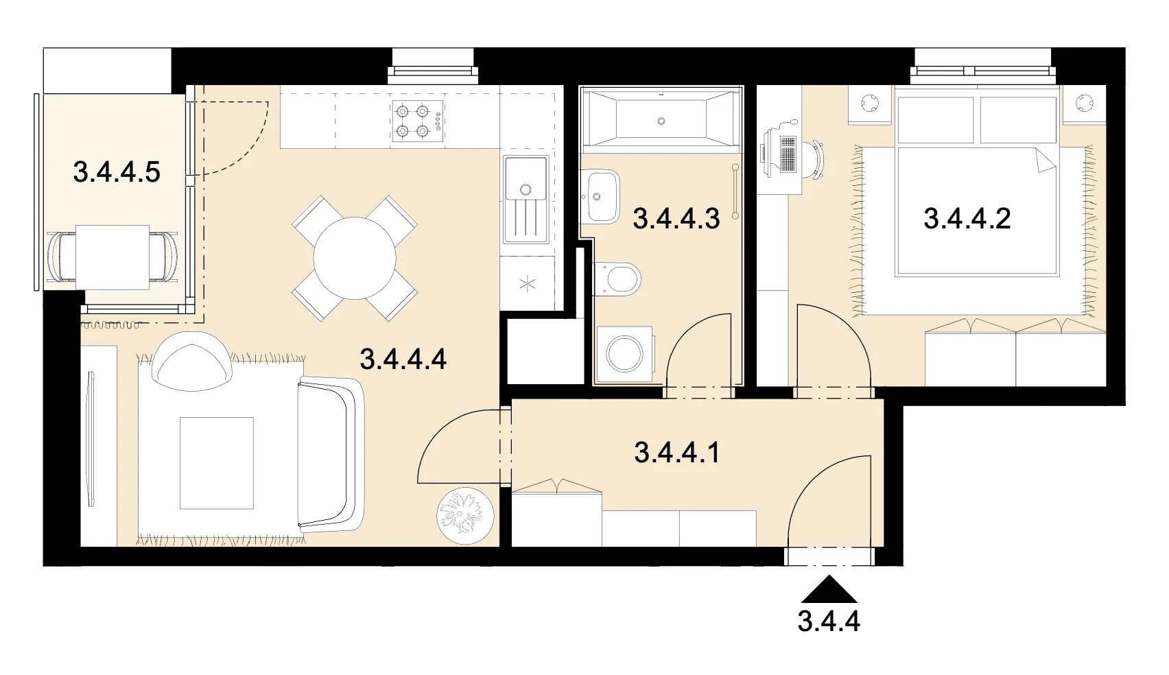 | 04 | Obývací pokoj + KK | 21,7 m2 |