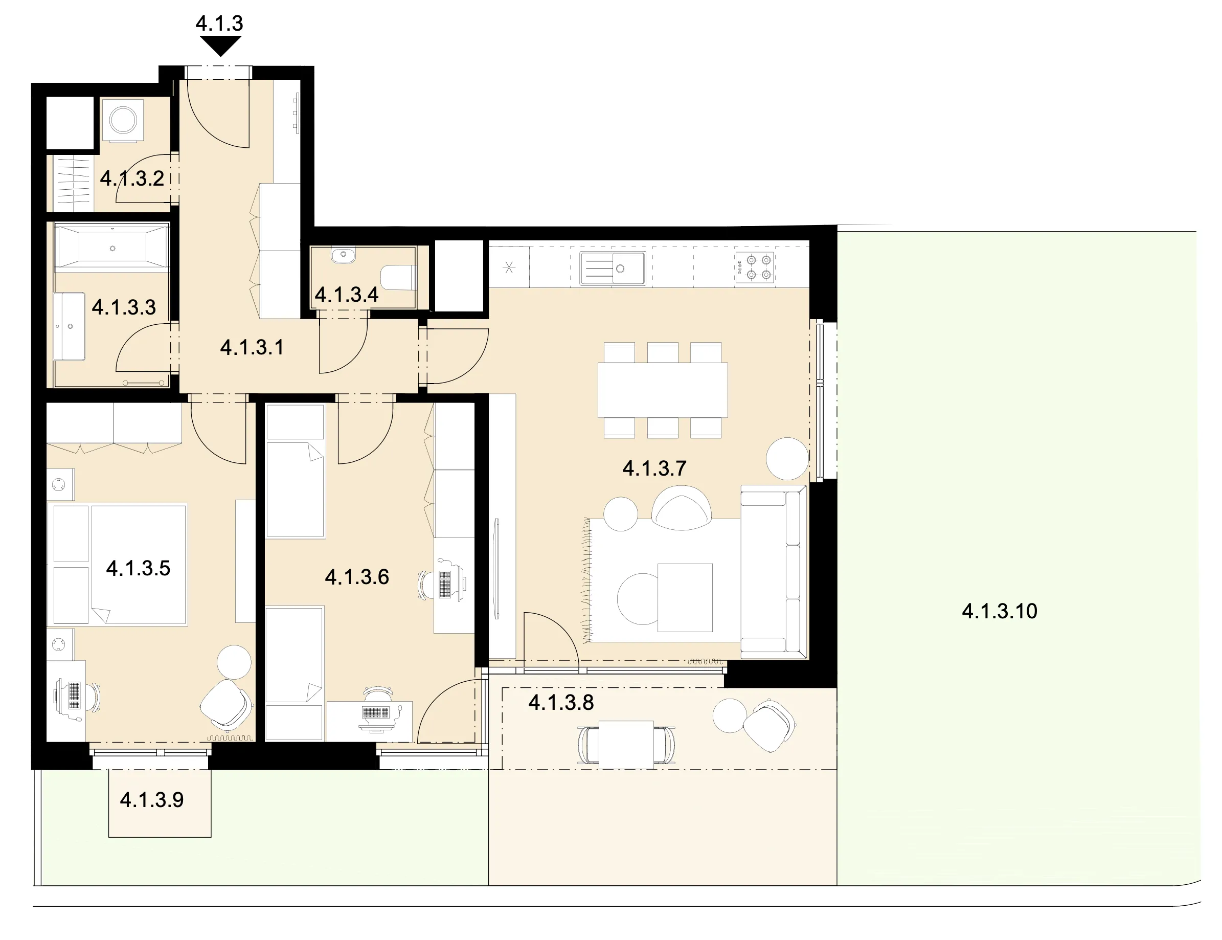 | 07 | Obývací pokoj + KK | 30,5 m2 |