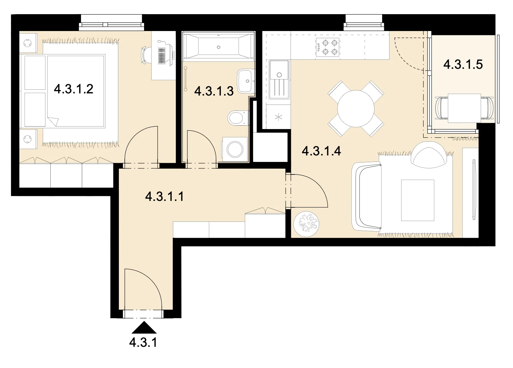 | 04 | Obývací pokoj + KK | 21,7 m2 |